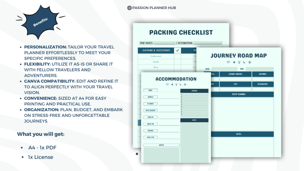 - Comprehensive 31-Page Planner: Every tool you need for seamless travel organization.